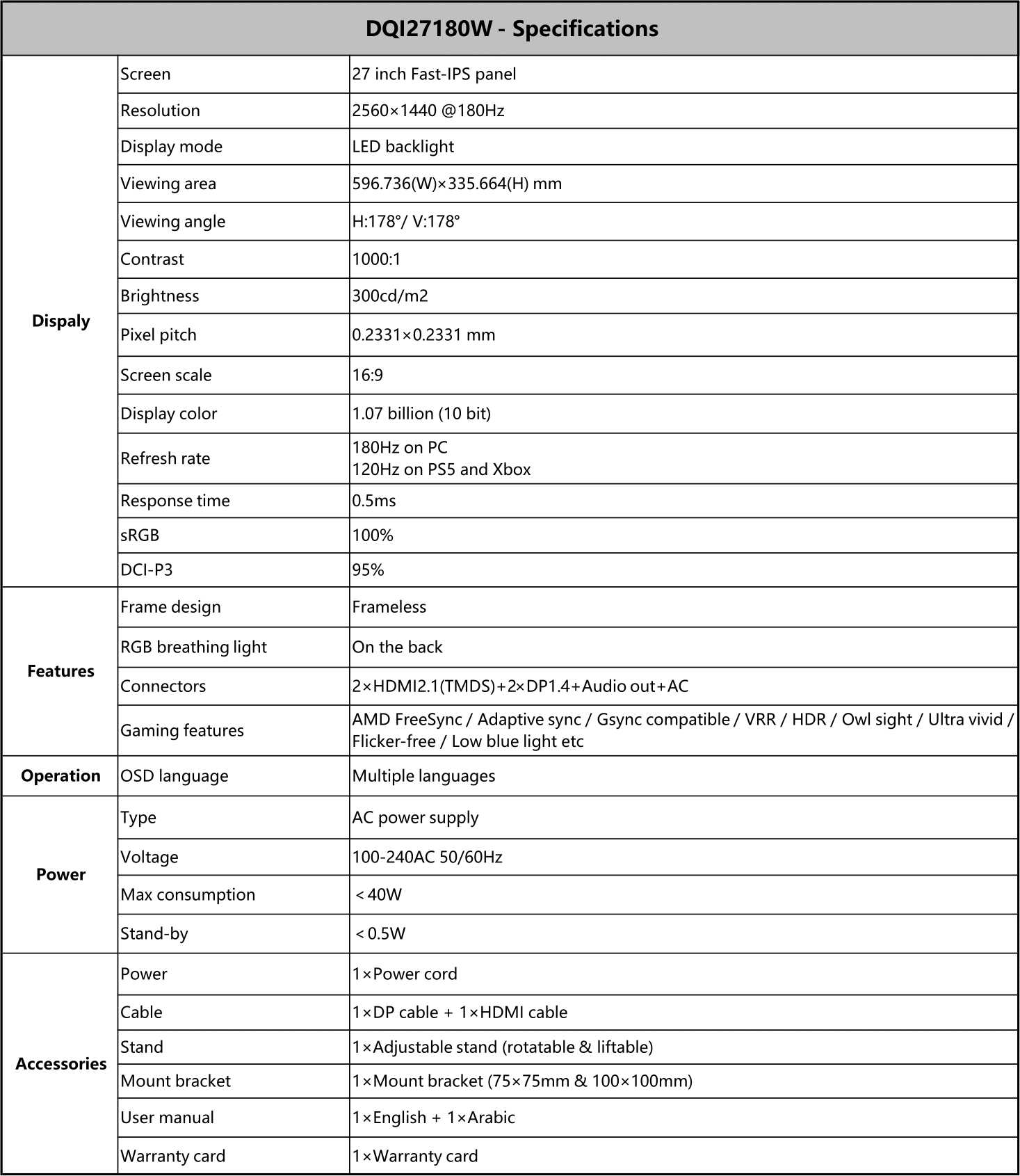 - Built for Gamers and Professionals: Whether you’re chasing victory, creating content, or working hard, the DQI27180w delivers exceptional visuals and smooth performance for all your needs.