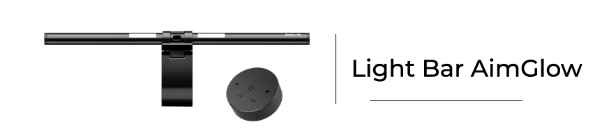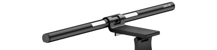 Upgrade your workspace lighting with the Devo Tech Light Bar AimGlow. Designed to mount securely on top of your monitor, it saves desk space while eliminating shadows and screen glare caused by traditional desk lamps. The asymmetric LED design reduces reflective glare and can be tilted to direct light exactly where you need it. A built-in rear light adds subtle ambient backlighting, enhancing your setup for work, gaming, or entertainment.